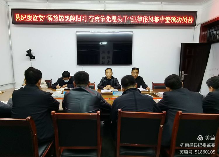 11月2日晚,旬邑县纪委监委召开“解放思想除旧习、奋勇争先埋头干”纪律作风集中整顿动员部署会议,县纪委监委全体干部、各派驻纪检监察组负责同志参加会议。